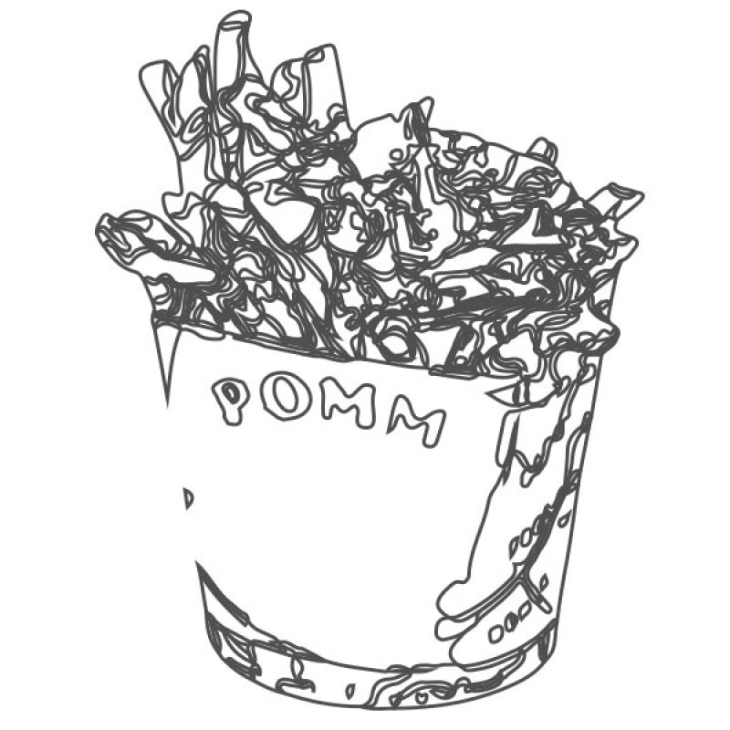 Alle Pfannen Gerichte werden mit Pommes oder Reis und Salat serviert