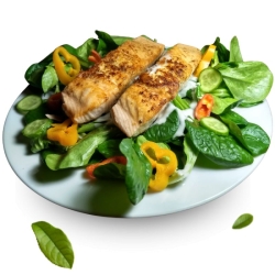 Hähnchenbrust, Gemischter Salat, Champignons, Weichkäse und Paprika