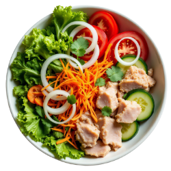 Thunfisch, Grüner Salat, Mais, Tomaten, Rucola und Peperoni